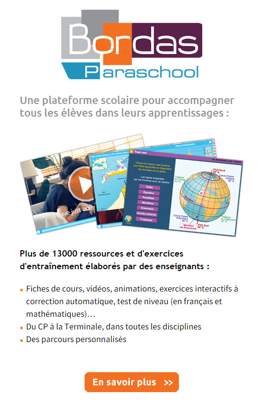 La plateforme "CANAL NUMERIQUE DES SAVOIRS/PARASCHOOL" est accessible aux élèves et aux enseignants du collège depuis l'ENT après identification : puis