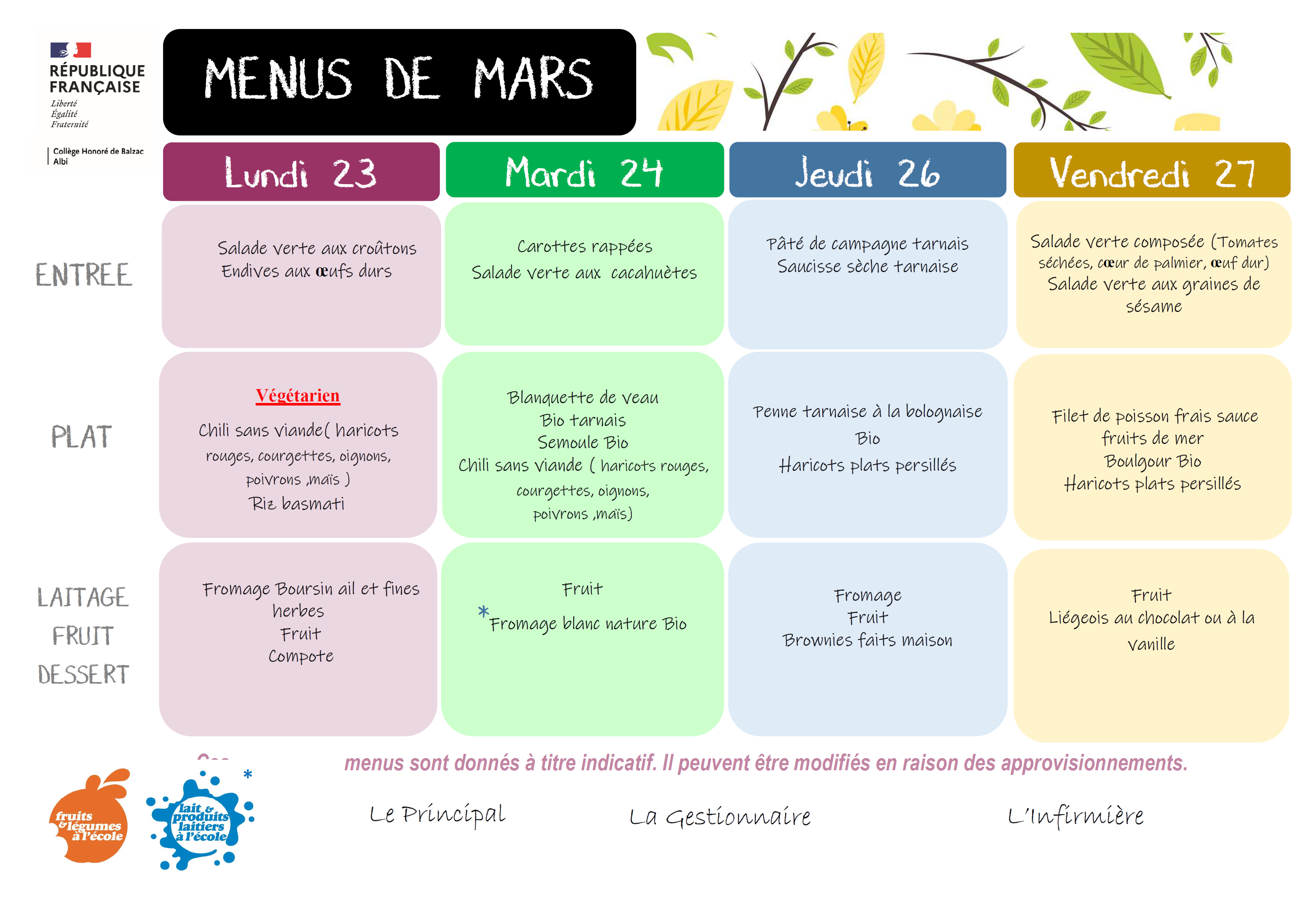 LES MENUS DU SELF